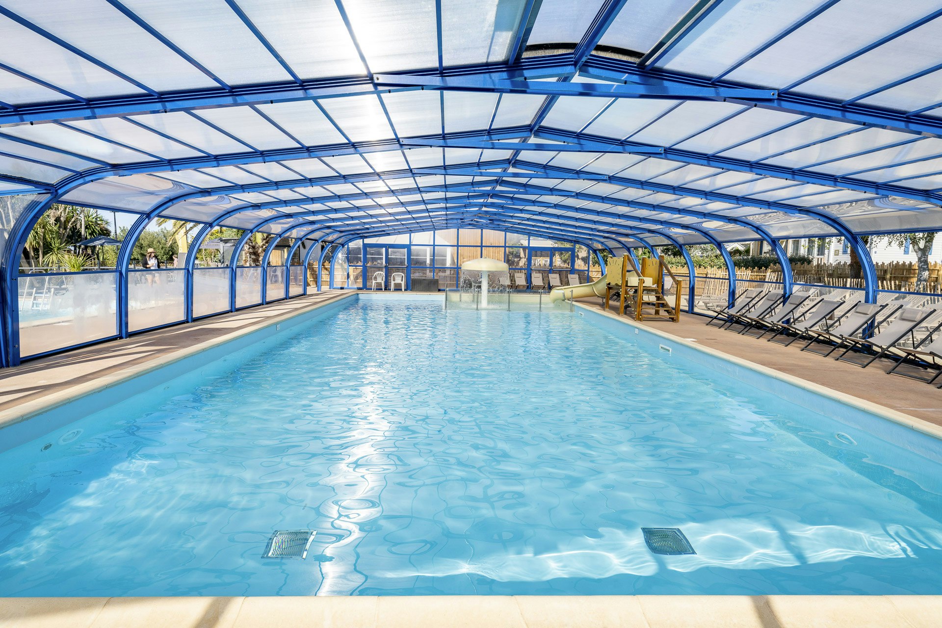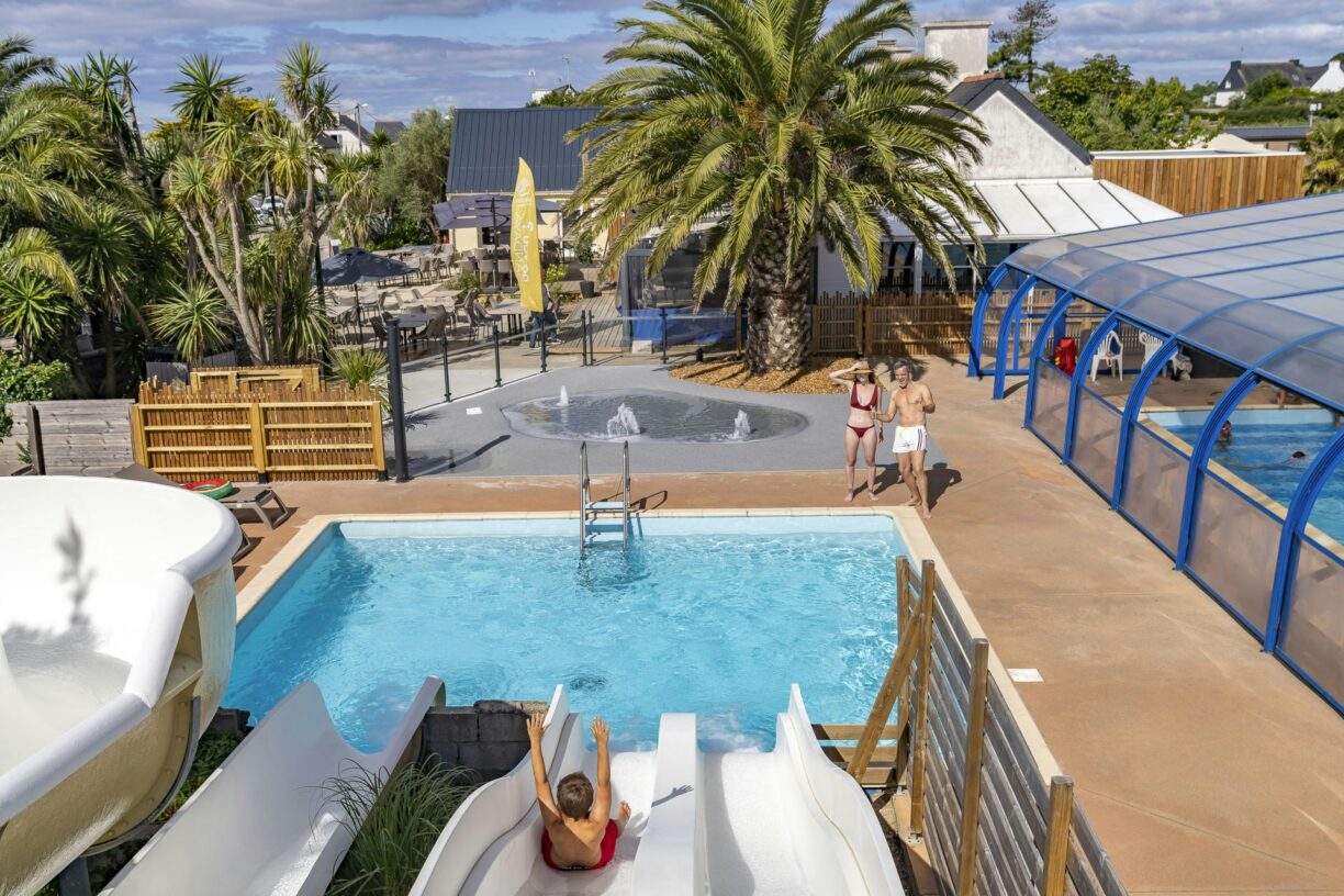 Der Camping Sandaya Le Kérou ist besonders familienfreundlich und bietet zahlreiche Freizeitmöglichkeiten für Kinder und Erwachsene. Ein großer Spielplatz, Sportanlagen und ein Schwimmbad sorgen dafür, dass für jeden etwas dabei ist. Hier können Kinder sicher spielen, während die Eltern entspannen und die Natur genießen.