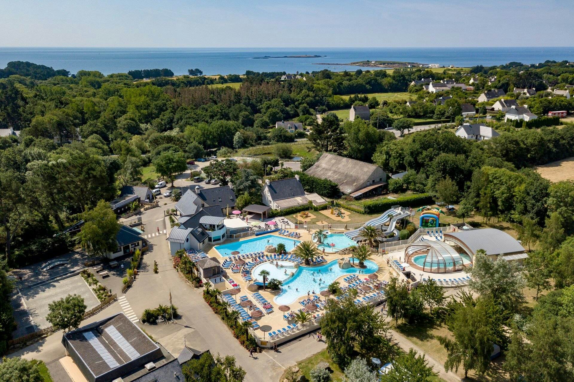 Der Camping Sandaya Deux Fontaines liegt eingebettet in die malerische Landschaft von Névez in der Bretagne, Frankreich. Dieser ausgezeichnete Campingplatz bietet Ihnen die perfekte Mischung aus Natur und Komfort, ideal für Familien, Paare und Freunde, die einen unvergesslichen Urlaub in der Natur verbringen möchten. Der Platz ist von üppigen Wäldern und blühenden Wiesen umgeben und bietet einen direkten Zugang zu strahlend blauen Gewässern, was ihn zu einem der besten Campingplätze am Wasser in der Region macht.