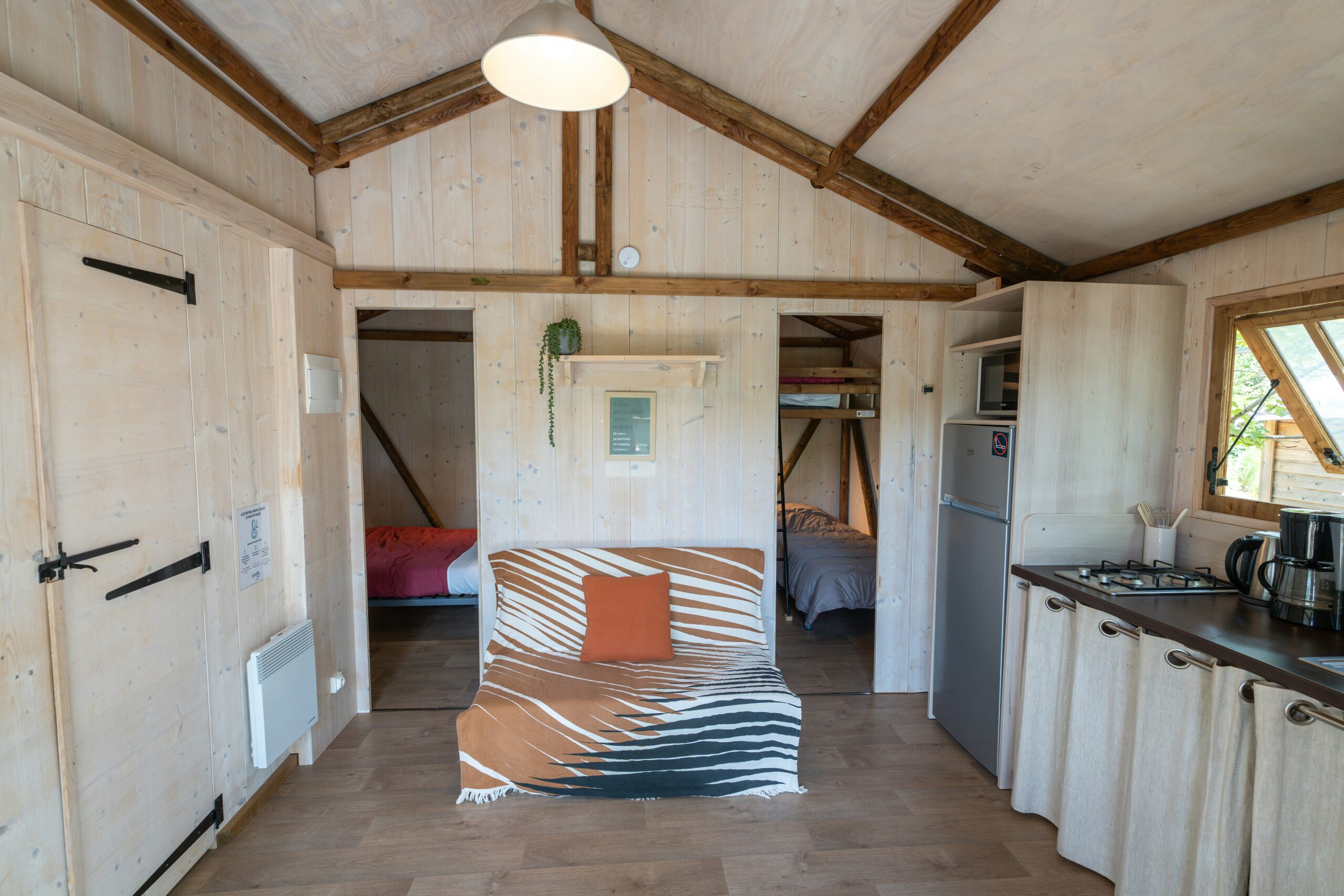 Auf Camping Sunêlia La Source haben die Gäste die Wahl zwischen verschiedenen Unterkunftsmöglichkeiten. Neben klassischen Zeltplätzen können auch Mietunterkünfte wie Mobilheime und Bungalows gebucht werden. Für diejenigen, die ein einzigartiges Erlebnis suchen, bietet der Platz auch Glamping-Unterkünfte an, die Komfort und Natur perfekt vereinen.