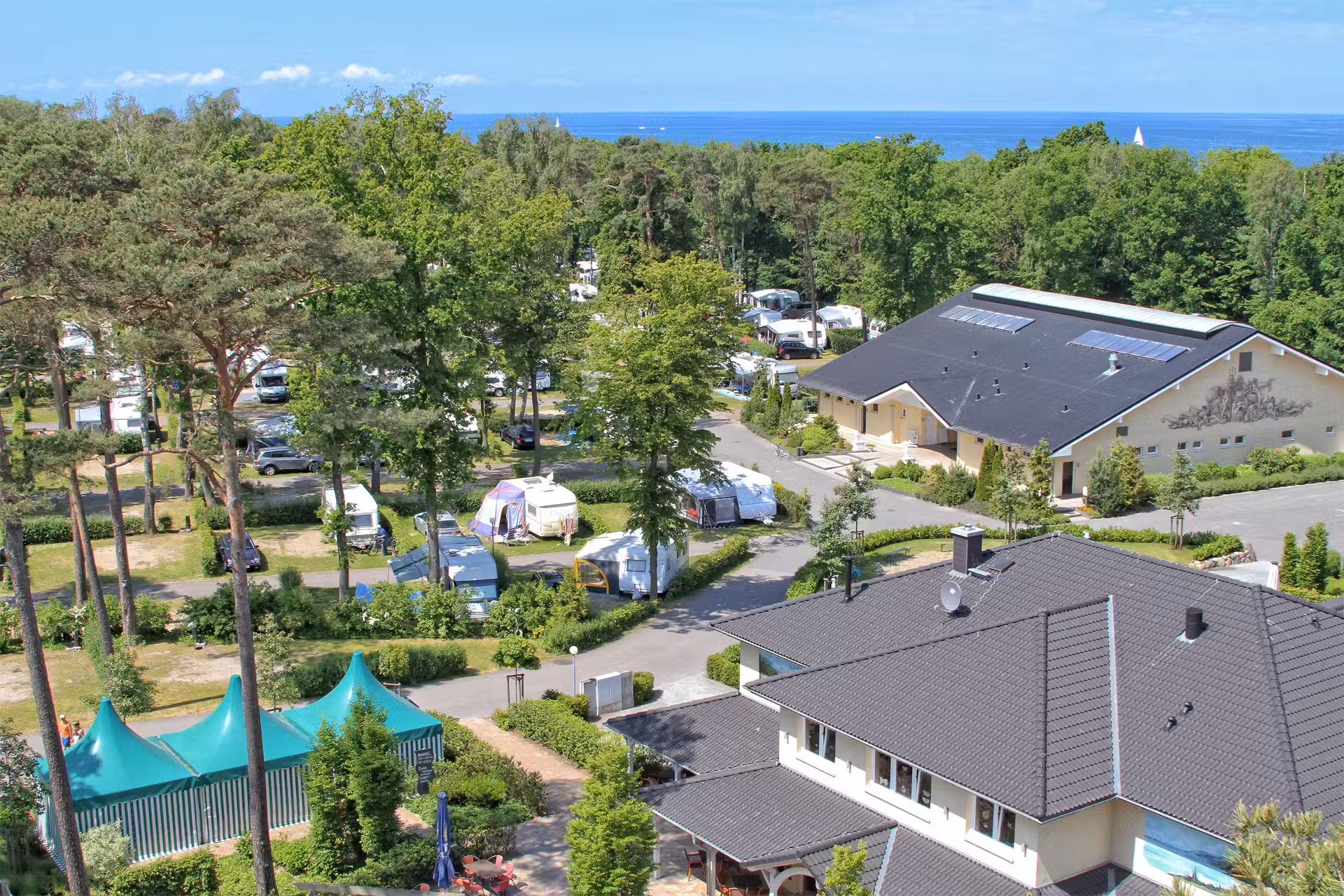 Ein besonderes Highlight ist der exklusive Baltic Sea SPA im Obergeschoss eines der Sanitärgebäude. Hier erwarten die Gäste mehrere Saunen, ein Ruheraum mit Blick auf die Ostsee, ein moderner Fitnessraum sowie Massage- und Kosmetikangebote. Wer Camping mit Wellness kombinieren möchte, findet hier ein echtes Premium-Angebot.