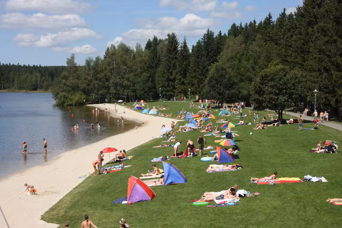 Ein Highlight sind zwei feinsandige Strände mit flachem Einstieg und großer Liegewiese, perfekt für kleine Kinder und Nichtschwimmer. Direkt an den Stränden befinden sich zwei imposante Riesenwasserrutschen – ein Publikumsmagnet für Jung und Alt. Der großzügige Abenteuerspielplatz, die Minigolfanlage sowie Sportangebote wie Volleyball und Tischtennis sorgen für vielseitige Freizeitmöglichkeiten auf dem Gelände.