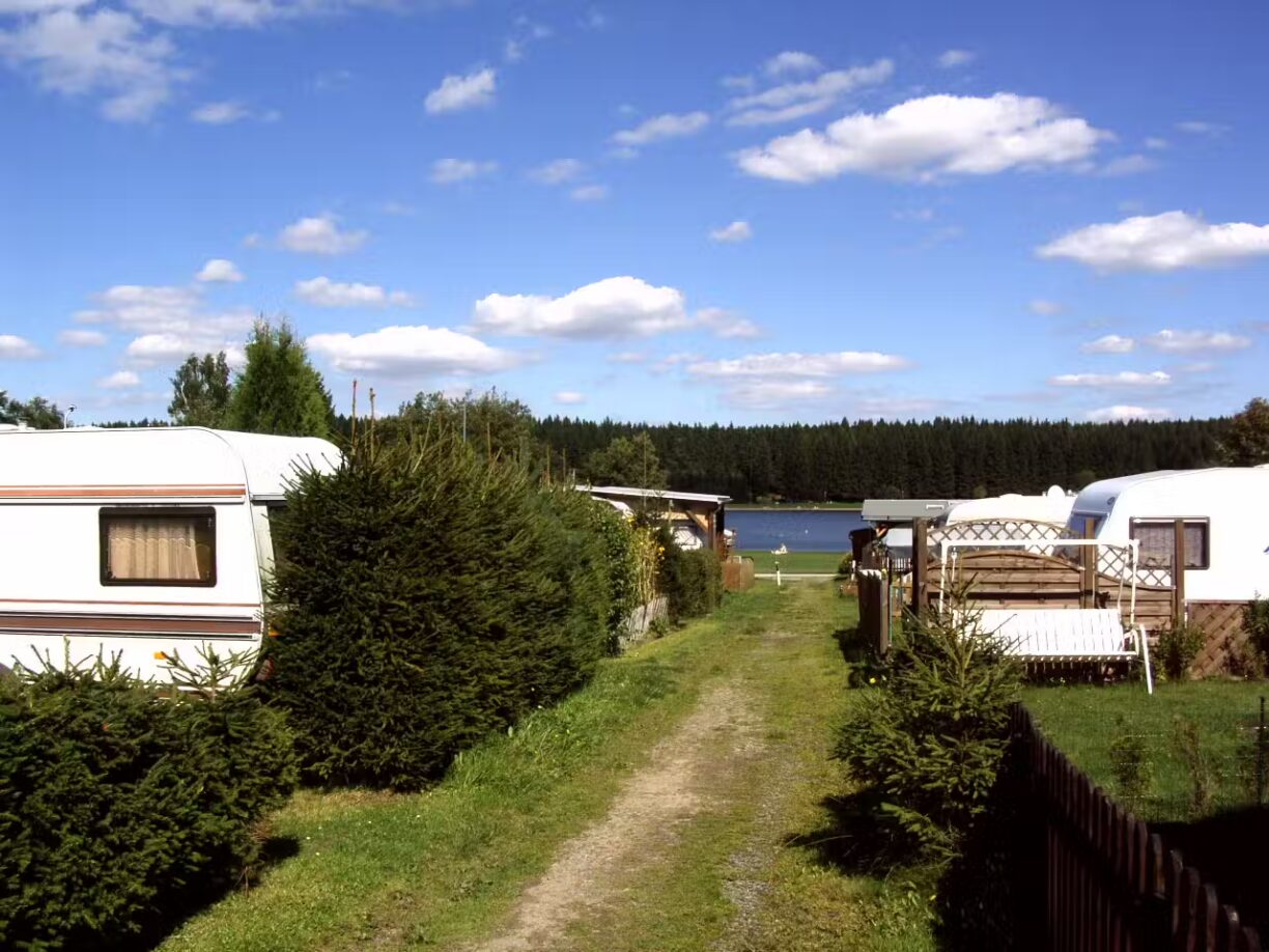 Campingpark Greifensteine liegt idyllisch am Greifenbach-Stauweiher im Erzgebirge, umgeben von weitläufigen Wäldern und nur wenige Gehminuten von der historischen Greifenstein-Felsformation entfernt. Der gesamte Campingpark erstreckt sich über etwa 25 Hektar leicht geneigten Wiesengeländes, teils schattig durch Laub- und Nadelbäume – ideal für Familien, Zeltfreunde, Wohnmobile und Dauercamper.