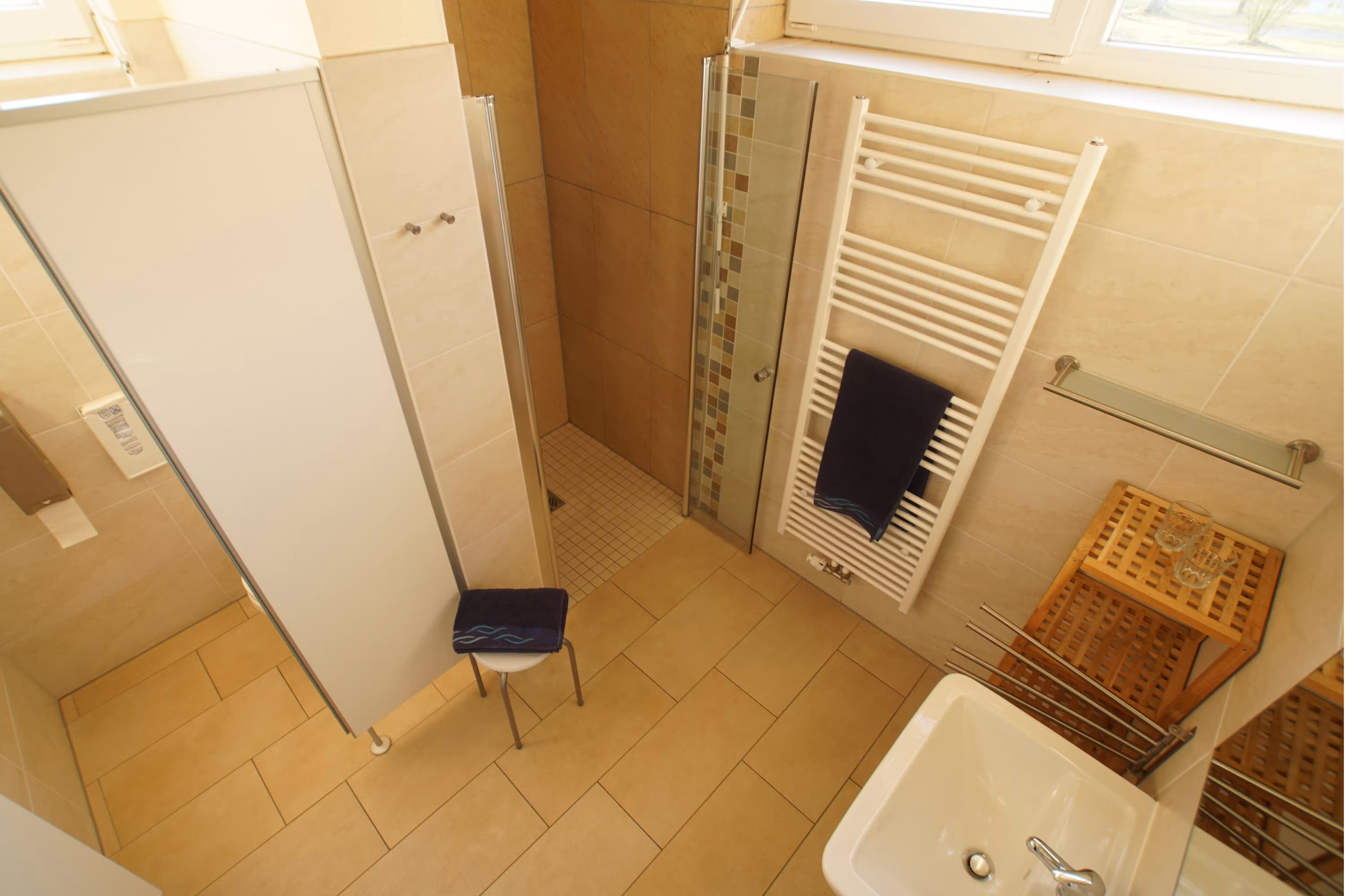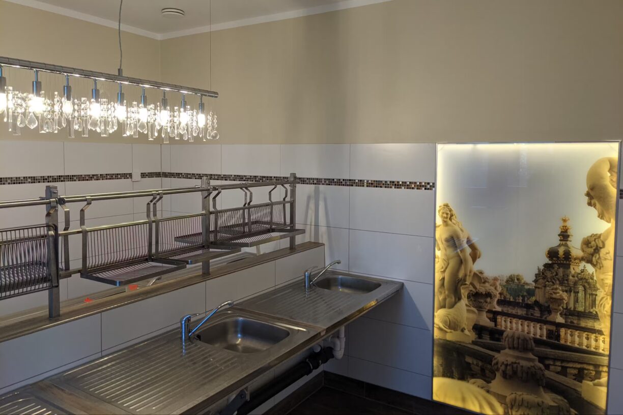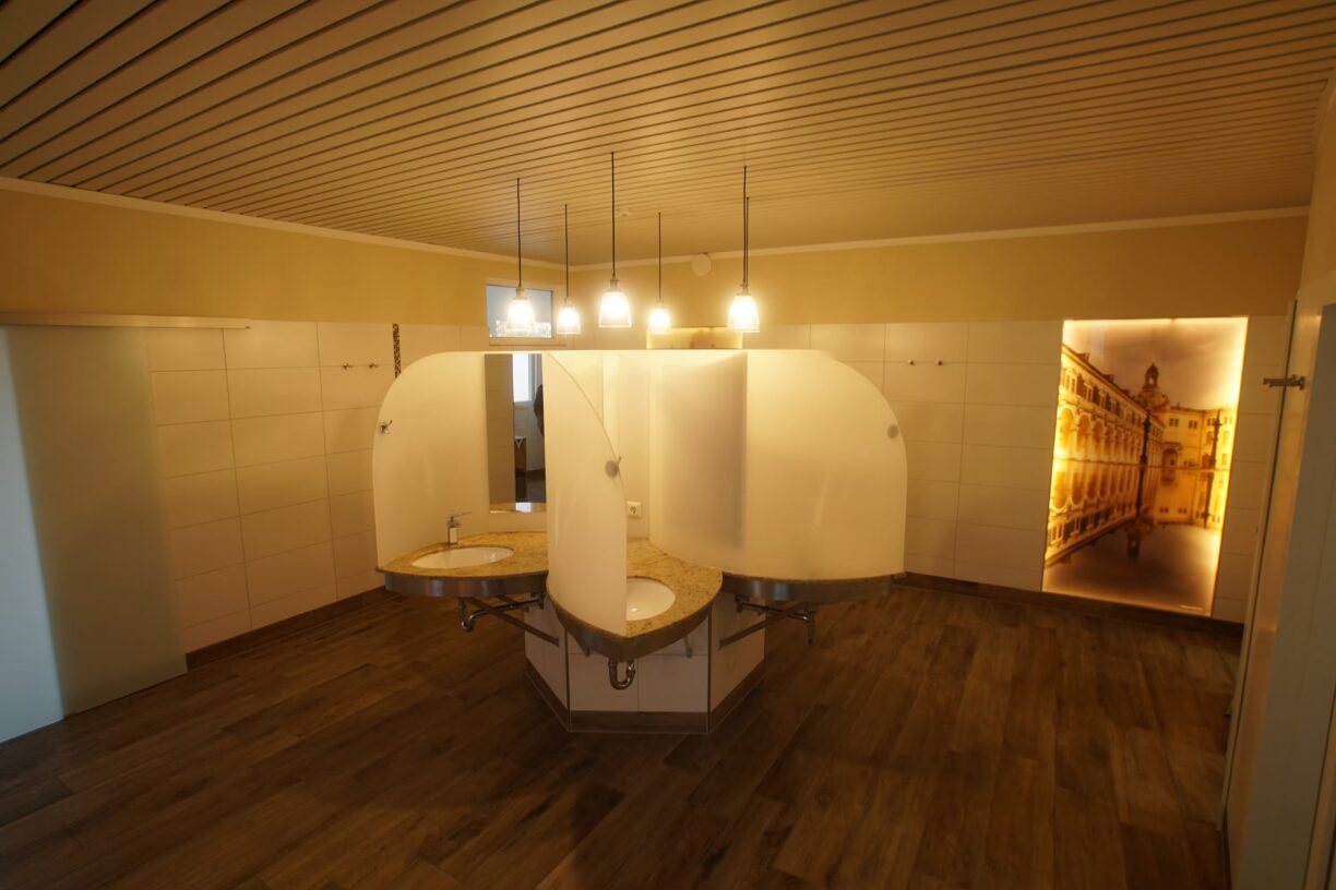 In puncto Ausstattung lässt die LuxOase kaum Wünsche offen. Die Sanitäranlagen sind modern, gepflegt und großzügig dimensioniert. Neben klassischen Duschen und WCs gibt es Einzelwaschkabinen, Familienbäder und barrierefreie Einrichtungen. Waschmaschinen, Trockner und eine separate Spülküche stehen ebenfalls zur Verfügung. Besonders hervorzuheben ist die tägliche und gründliche Reinigung, die für ein konstant hohes Hygieneniveau sorgt. Die Rezeption ist durchgängig besetzt und bietet einen umfangreichen Service – von der persönlichen Beratung bis zur Ausflugsplanung. Gasflaschen können direkt vor Ort getauscht werden. Ein kleiner Shop versorgt die Camper mit Getränken, Lebensmitteln und Campingzubehör. WLAN ist im gesamten Platzbereich verfügbar und auch das Mobilfunknetz funktioniert zuverlässig.