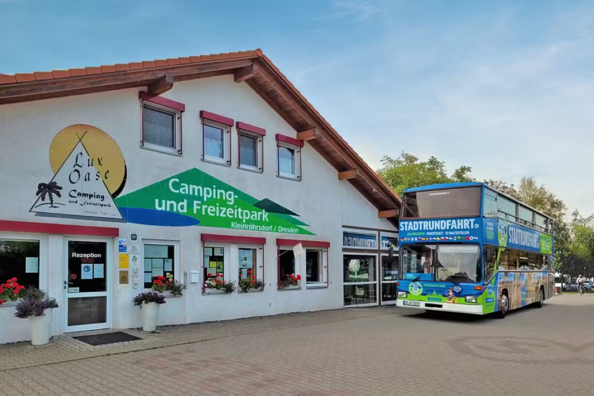 Der Camping‑ & Freizeitpark LuxOase befindet sich in idyllischer Lage in Kleinröhrsdorf, im östlichen Teil Sachsens. Umgeben von grünen Wiesen, kleinen Wäldern und einem Badesee, liegt der Platz inmitten einer ländlich geprägten Umgebung – und doch hervorragend angebunden: Nur wenige Kilometer entfernt befindet sich die Autobahn A4 (Abfahrt Pulsnitz), über die man bequem und schnell nach Dresden oder auch in Richtung Görlitz gelangt. Die Fahrtzeit ins Dresdner Stadtzentrum beträgt etwa 30 Minuten. Damit ist die LuxOase nicht nur ein Rückzugsort für Erholungssuchende, sondern auch ein perfekter Ausgangspunkt für Städtereisen und kulturelle Entdeckungen in der Region. Sehenswürdigkeiten wie die Sächsische Schweiz, die Bastei oder das Elbsandsteingebirge sind mit dem Auto gut erreichbar. Die ruhige Lage am See bietet zudem eine ausgezeichnete Möglichkeit, den Alltagsstress hinter sich zu lassen und in der Natur zur Ruhe zu kommen.