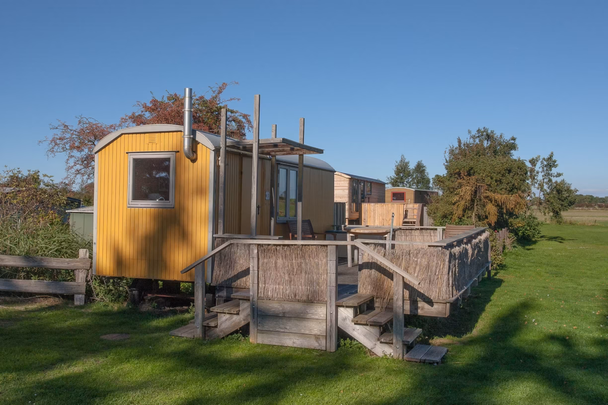 Mit insgesamt 44 großzügig bemessenen Rasenparzellen bietet der Campingplatz ausreichend Raum für Zelte, Wohnwagen und Wohnmobile. Viele dieser Stellplätze sind mit Wasser-, Abwasser- und Stromanschlüssen ausgestattet, um den Komfort der Gäste zu gewährleisten. Für diejenigen, die keine eigene Campingausrüstung besitzen oder etwas Besonderes suchen, stehen verschiedene Mietunterkünfte zur Verfügung. Dazu zählen ein Mietwohnwagen, zehn individuell gestaltete Campinghäuser, acht Romantik-Bauwagen und fünf Campinghütten. Diese Unterkünfte sind liebevoll eingerichtet und bieten einen besonderen Charme für einen unvergesslichen Aufenthalt.