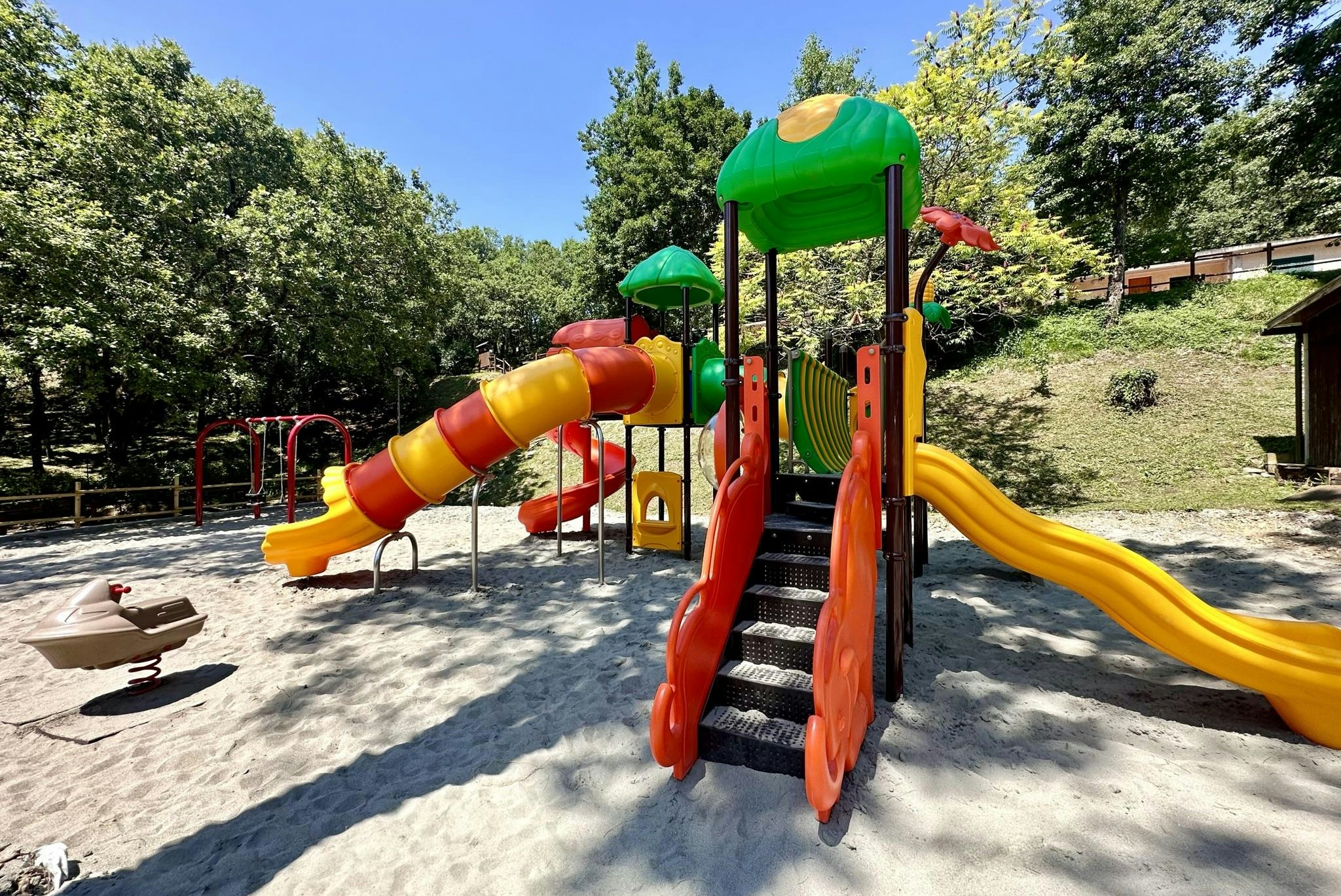 Der Camping Village Mugello Verde bietet eine Vielzahl von Freizeitmöglichkeiten, die sowohl für Kinder als auch für Erwachsene geeignet sind. Genießen Sie die sonnigen Tage am hauseigenen Schwimmbad oder erkunden Sie die umliegenden Wanderwege, die durch die malerische Landschaft der Toskana führen. Für sportliche Aktivitäten stehen Sportplätze und Fahrräder zur Verfügung, damit Sie die Umgebung erkunden können. Angler können sich auf verschiedene Angelmöglichkeiten freuen, während Kinder auf dem Spielplatz viel Spaß haben können.
