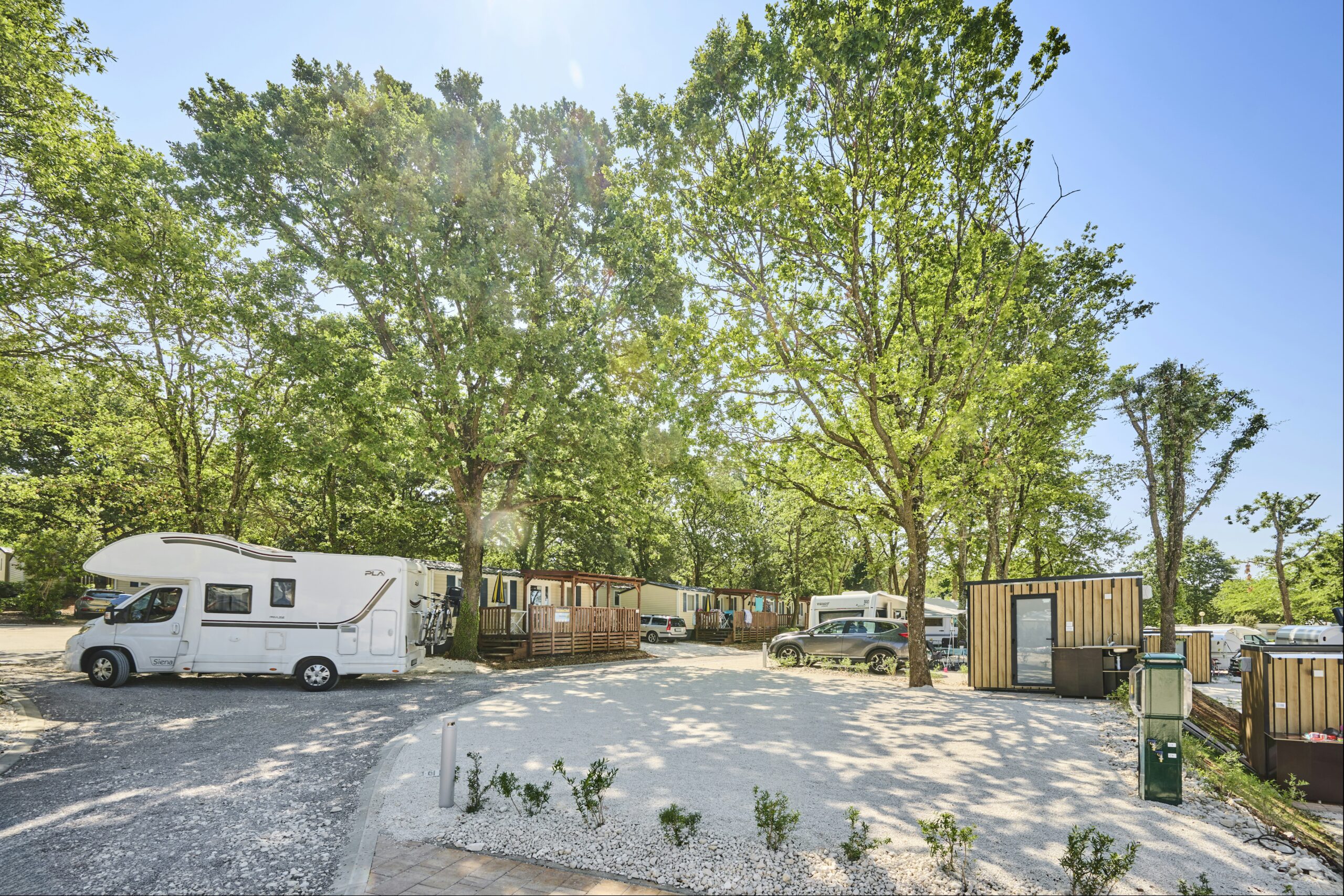 Der Camping Bijela Uvala legt großen Wert auf Nachhaltigkeit. Mülltrennung und der Einsatz von ökologischen Reinigungsmitteln sind Teil des Konzepts, um die natürliche Schönheit Istriens zu bewahren. Zudem stehen E-Bike-Ladestationen zur Verfügung, um umweltfreundlich die Umgebung zu erkunden.