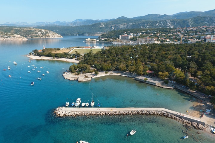 Die Lage des Kamp Oštro macht ihn zu einem idealen Ziel für alle, die eine Auszeit in der Natur suchen. Der Campingplatz liegt in der Nähe von malerischen Stränden und bietet direkten Zugang zu klaren Gewässern, die sich hervorragend zum Schwimmen und für verschiedene Wassersportarten eignen. Die umliegende Landschaft ist geprägt von grünen Hügeln und Wäldern, die zahlreiche Möglichkeiten für Wanderungen und Erkundungstouren bieten.