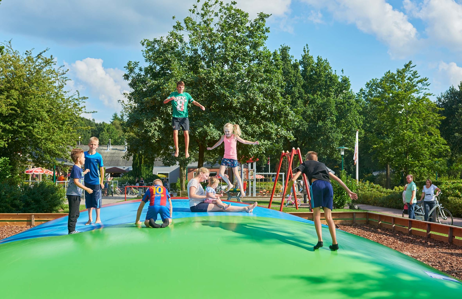 Die Umgebung von Camping De Klimberg bietet zahlreiche Freizeitangebote, die sowohl für Abenteuerlustige als auch für Ruhe suchende Gäste geeignet sind. Die nahegelegenen Wander- und Radwege laden zu Erkundungstouren ein. Für Wassersportliebhaber gibt es Möglichkeiten zum Angeln oder für verschiedene Wassersportarten, die in der Umgebung angeboten werden. Die Natur rund um den Campingplatz ist ideal für entspannende Spaziergänge und bietet zahlreiche malerische Ausblicke.