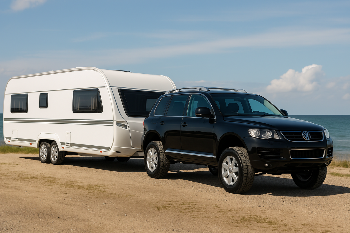 - 2.000–3.500 kg: Luxuscaravans oder Doppelachsen – dafür braucht es echte Zugpferde wie Pick-ups oder Fahrzeuge mit hoher Anhängelast wie z. B. dein VW Touareg 💪.